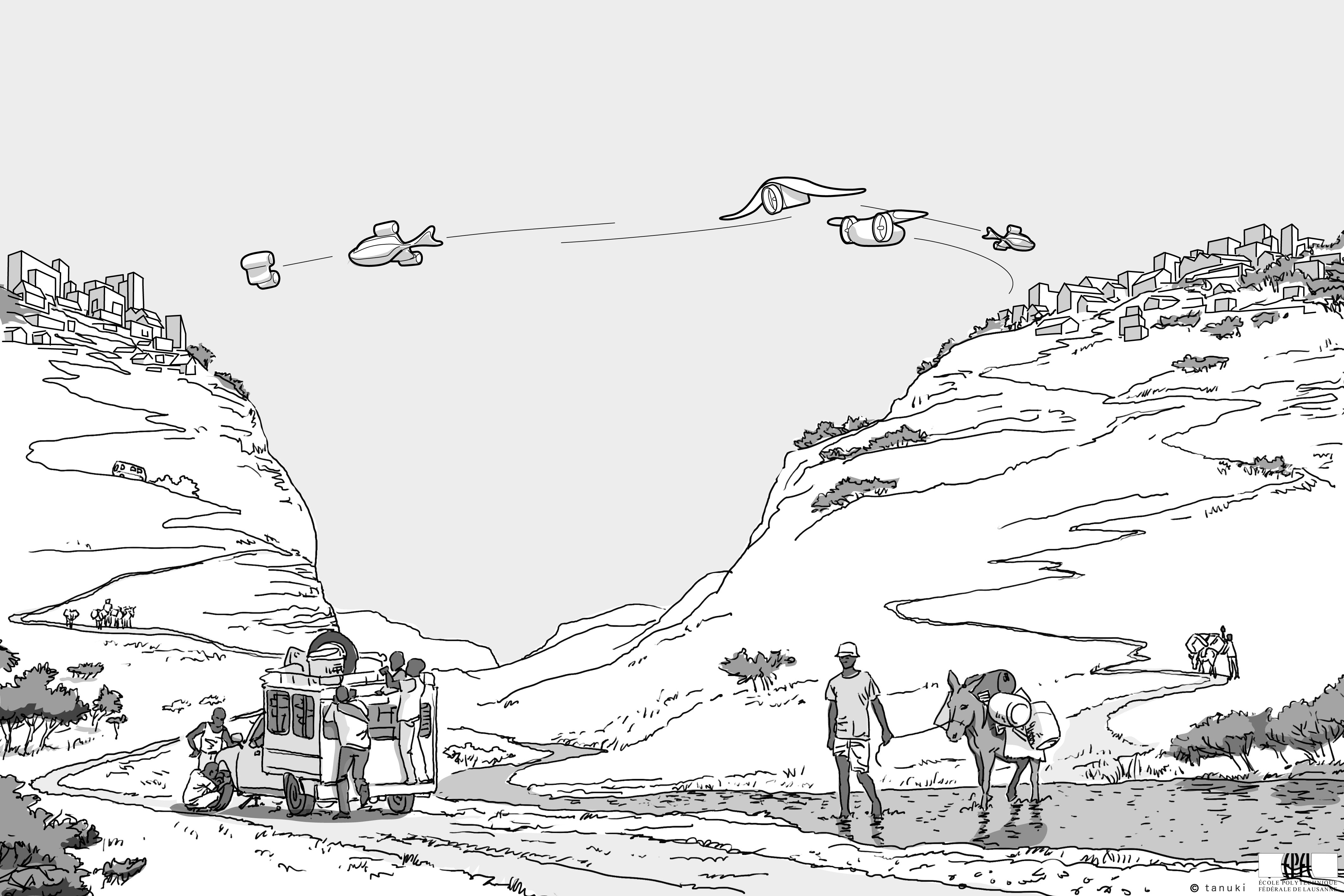 Flying donkeys are cargo drones with rugged air frames capable of lifting suitcase loads over long distances. The first commercial flying donkeys, due in Africa by 2020, will carry at least 20 kilos over 50 kilometres in less than one hour.